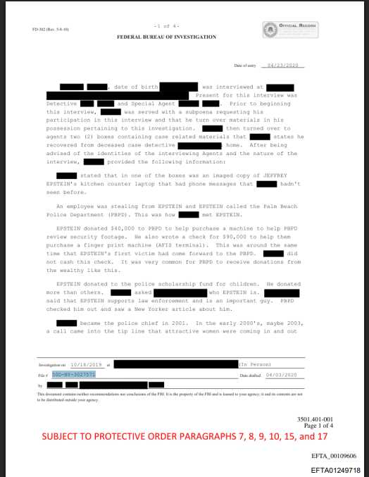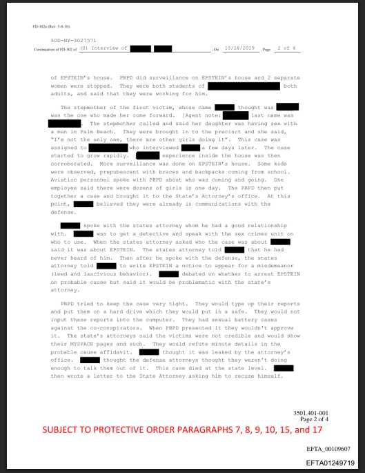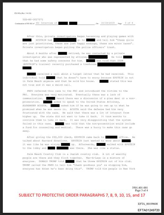 "TRUMP called the Palm Beach Police Department (PBPD) to tell him 'thank goodness you're stopping him, everyone has known he's been doing this'. TRUMP told him people in New York knew EPSTEIN was disgusting. TRUMP said MAXWELL was EPSTEIN's operative, 'she is evil and to focus on her'. TRUMP told [CHIEF Michael REITER] that he was around EPSTEIN once when teenagers were present and TRUMP 'got the hell out of there'. TRUMP was one of the very first people to call when people found out that they were investigating EPSTEIN." ~ FBI OFFICIAL RECORD File 500-NY-3027571
